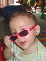 Just wanted to let everyone know that our appointment today went very well. We had our final consultation with the surgeon who will be doing Eden's Cochlear Implant. We have decided on this device. Her surgery is scheduled for Monday, October 3rd. She will stay overnight in the hospital, and will come home the next day with no bandages. We are VERY excited about getting Eden's implant, but also VERY terrified. After the surgery, Eden will spend one month healing completely before we go in to have the device activated. We've been warned that after activation it could take up to a year before Eden really begins to respond to sound. Since she has missed out on a year of auditory input, her brain has to start from scratch at trying to make sense out of what she hears. While many hearing children begin to say words around 12 months, Eden won't likely begin to talk at all until she is at least two (adjusted age of course), or later.