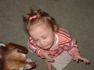 Physical therapy is coming along good for Holland. She is working on climbing, and is getting really good at it. We have big Tumbleforms steps and a slide in our family room. Holly can go up the three stairs, turn around, and slide down on her belly, all by herself. She is still working on cruising along the furniture and pushing her carts. She has always had a slight weakness or lag on her left side, with her hand and the tilt of her head, that is now it is affecting her foot. We are working on getting her some shoe inserts that will help correct it while she is learning to walk. I think she still has quite a way to go before she is walking well. Maybe by her second birthday...we'll see.