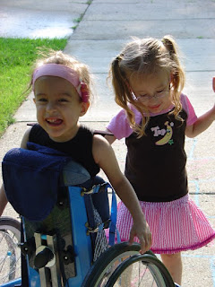 Boy, 6 hours is a long time though. We used to be able to take it off before we went out. Now she has to wear it, and it just adds to our motley crew image. Holland with her eye patch, glasses, orthotics, scabby knees, and crazy unbalanced gait, and Eden with her pony walker or wheelchair, cochlear implant, and orthotics. You should see some of the looks we get... Of course, any seasoned micropreemie parent could spot us a mile away! We don't care though. We smile and sing and chat as we continue on our merry way.