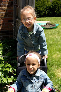 Holland had an eye doctor appt a couple of weeks back. The vision in her left (weaker) eye has gotten worse again, and she is not using it as well as she was. So, she got a new prescription and picked out a new pair of blue frames (her favorite color). We also started patching again for 2 hours each day. She has another appt next week to see how it's going. There is a possibility that she is going to need another eye surgery. We put it on hold 3 months ago because she was doing really well, but we may have to revisit after we see how things are going now with the new prescription. One of my goals for the summer is to look into vision therapy. I understand that there are mixed reviews about it's effectiveness, but I feel like we should look into it if we are considering another surgery.