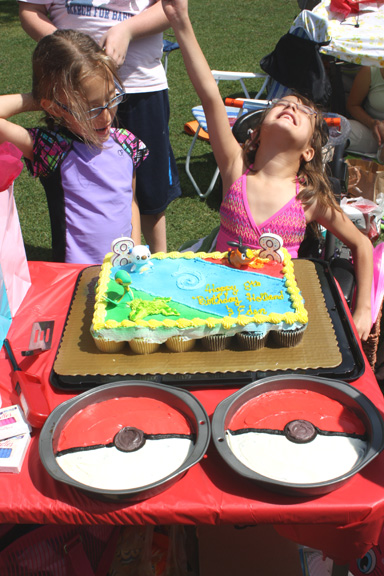 The girls are majorly, MAJORLY, M.A.J.O.R.L.Y into Pokemon these days, and received as gifts every Pokemon toy that has ever existed. They were in heaven. I was elated to have one last *Hurrah* for the "big" girls before they have to start sharing their bday parties with a little sister.